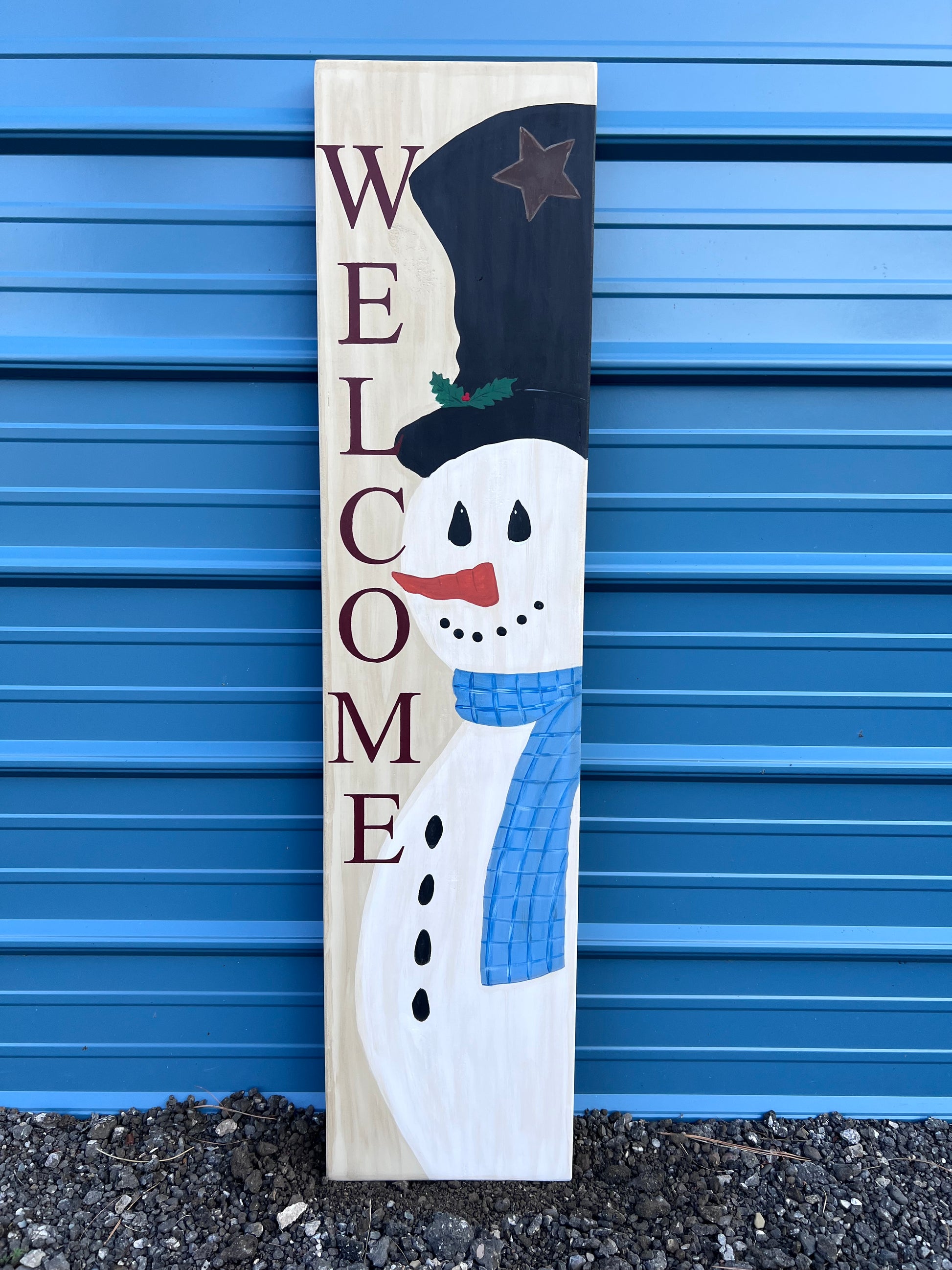 Add some whimsy to your front porch with our Winter Snowman Porch Leaner. This charming snowman is perfect for greeting guests and adding a touch of personality to your home during the winter months. Say hello to fun and festive decor with this unique porch leaner!