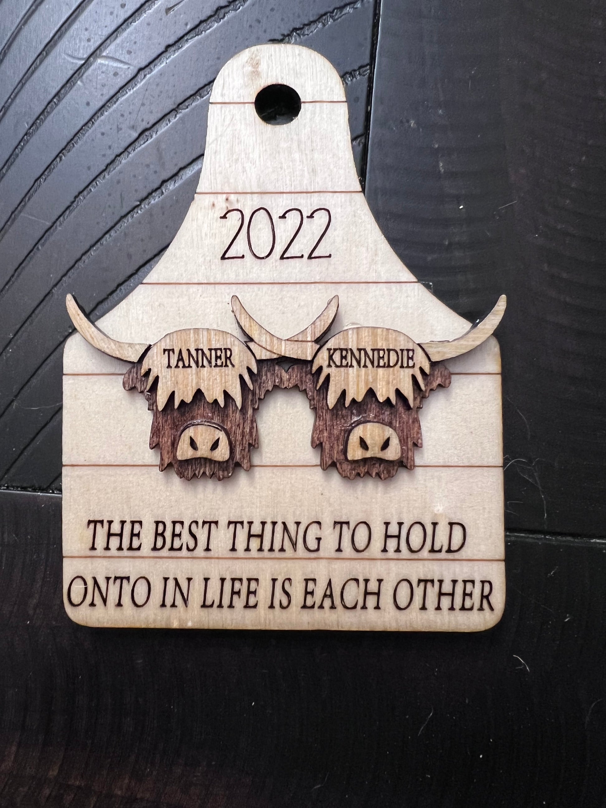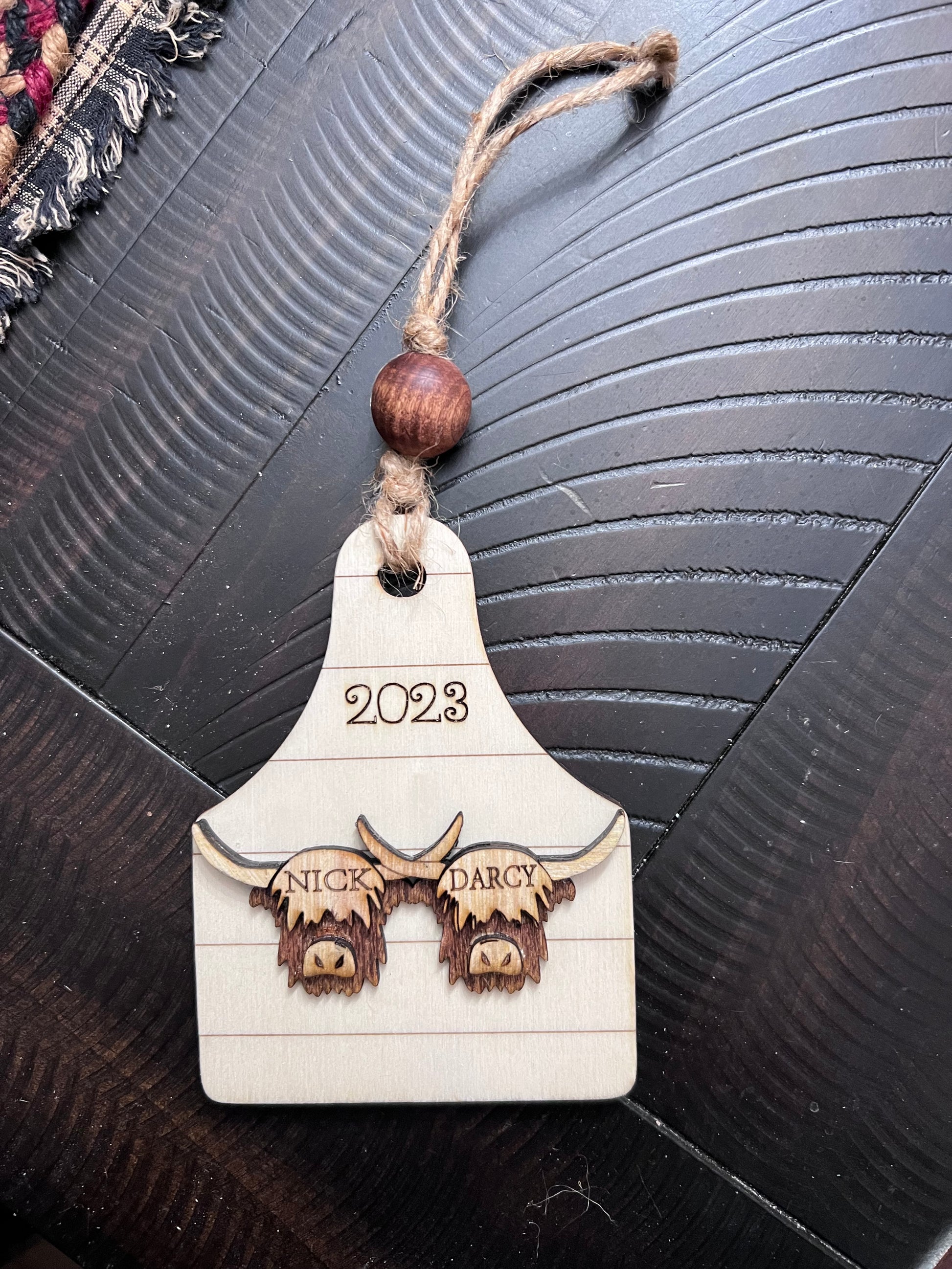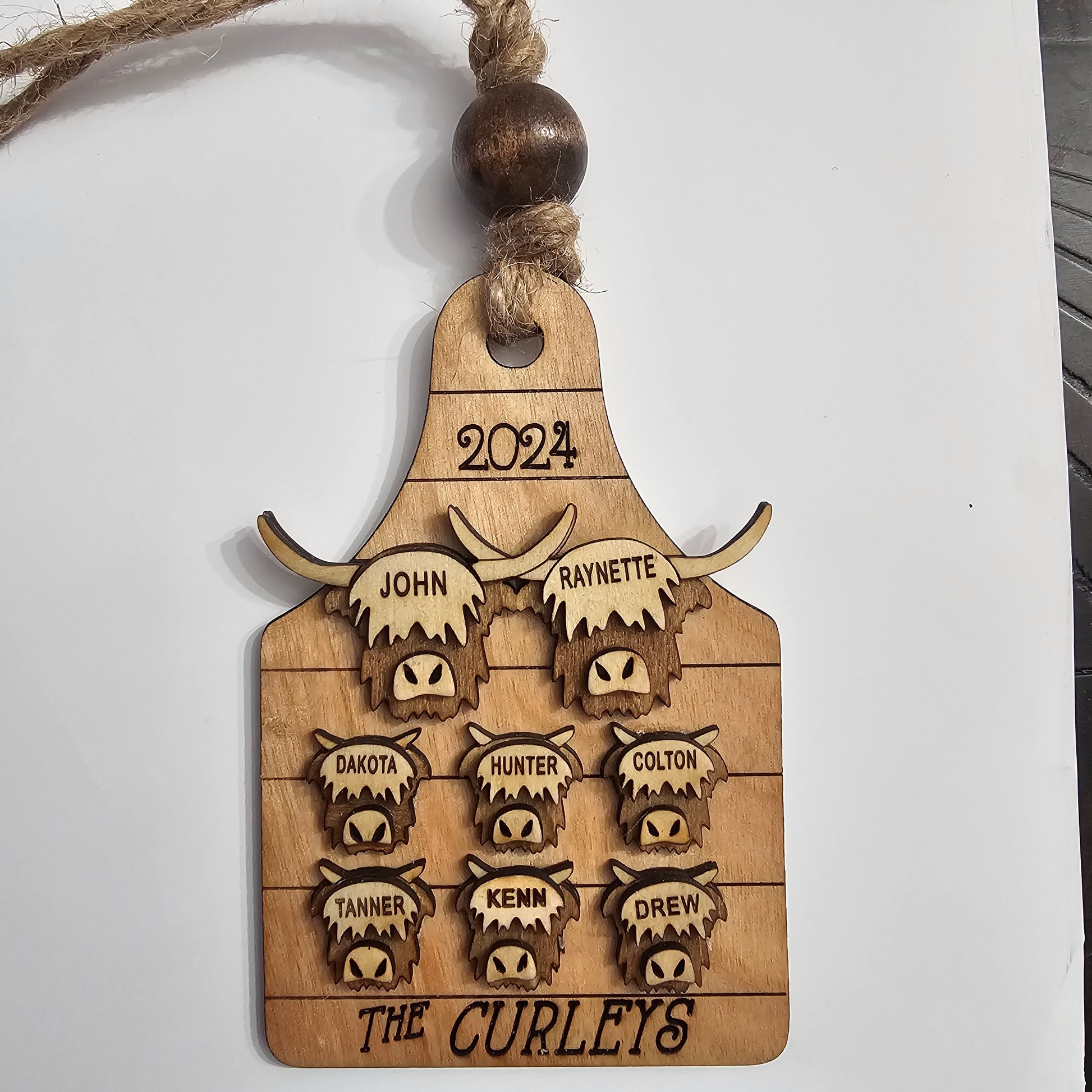 When ordering, please be sure to review your cart, and in the note box that pops up, let us know the # of heads and names you would like placed on the cows. Also, please note the saying on the bottom of the ornament is customizable as well so let us know if you would like that changed also. No extra charges for the custom verbiage.