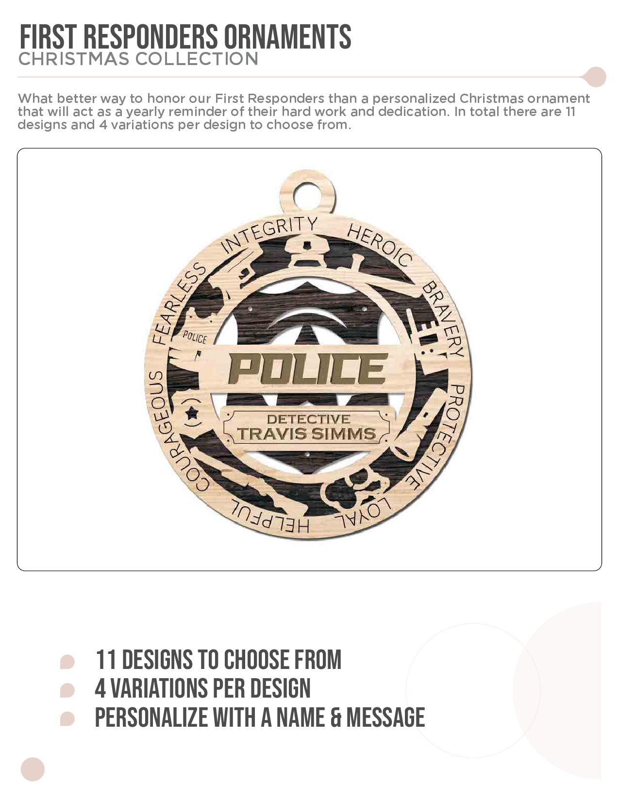 Show your appreciation for our First Responders and thank them for their dedication to keeping us safe with this unique product. It features the words “Police, Firefighter, Dispatcher, First Responder, Volunteer, Boarder Patrol, Deputy, Sheriff, EMT, and Paramedic” to honor those who serve our communities and save lives.