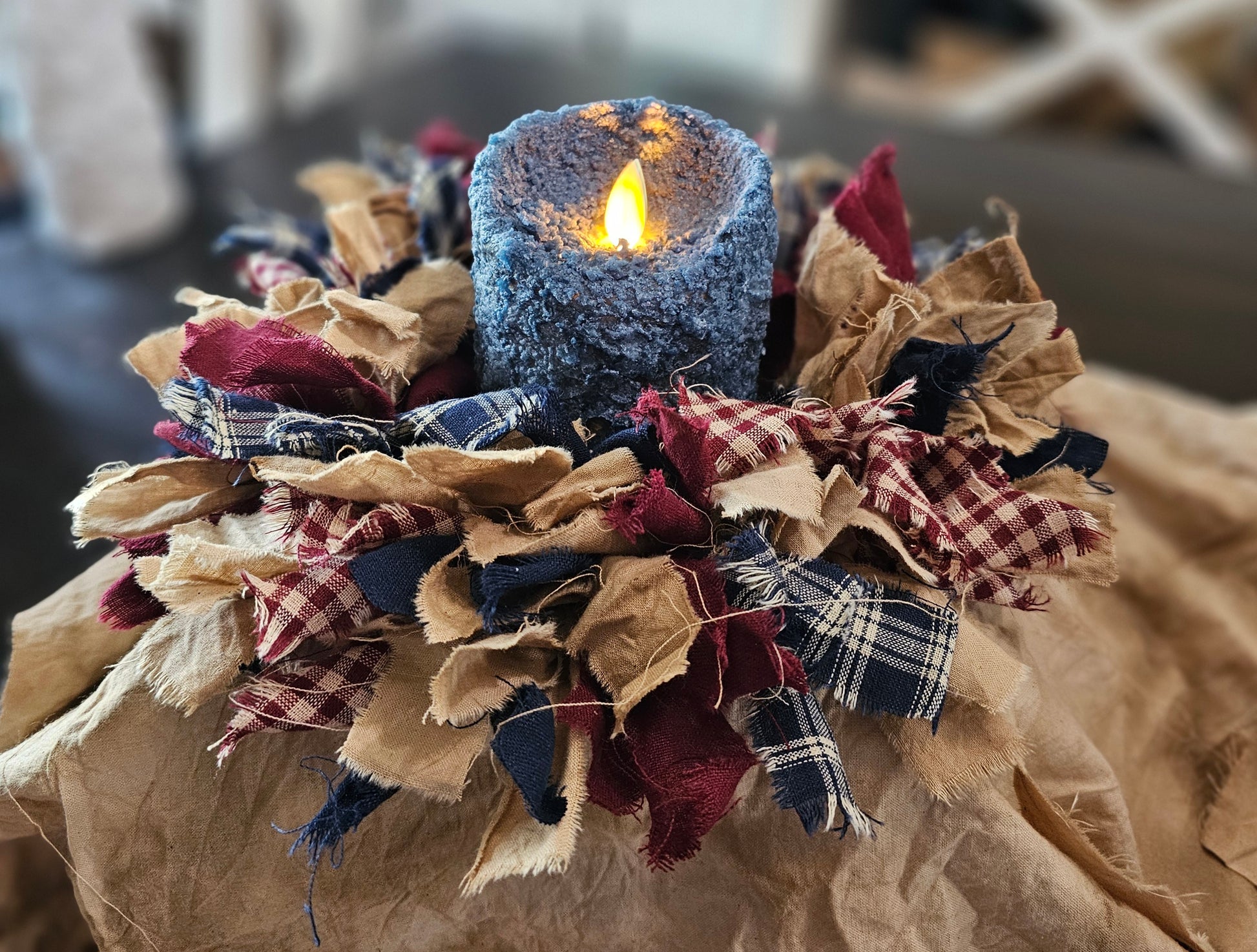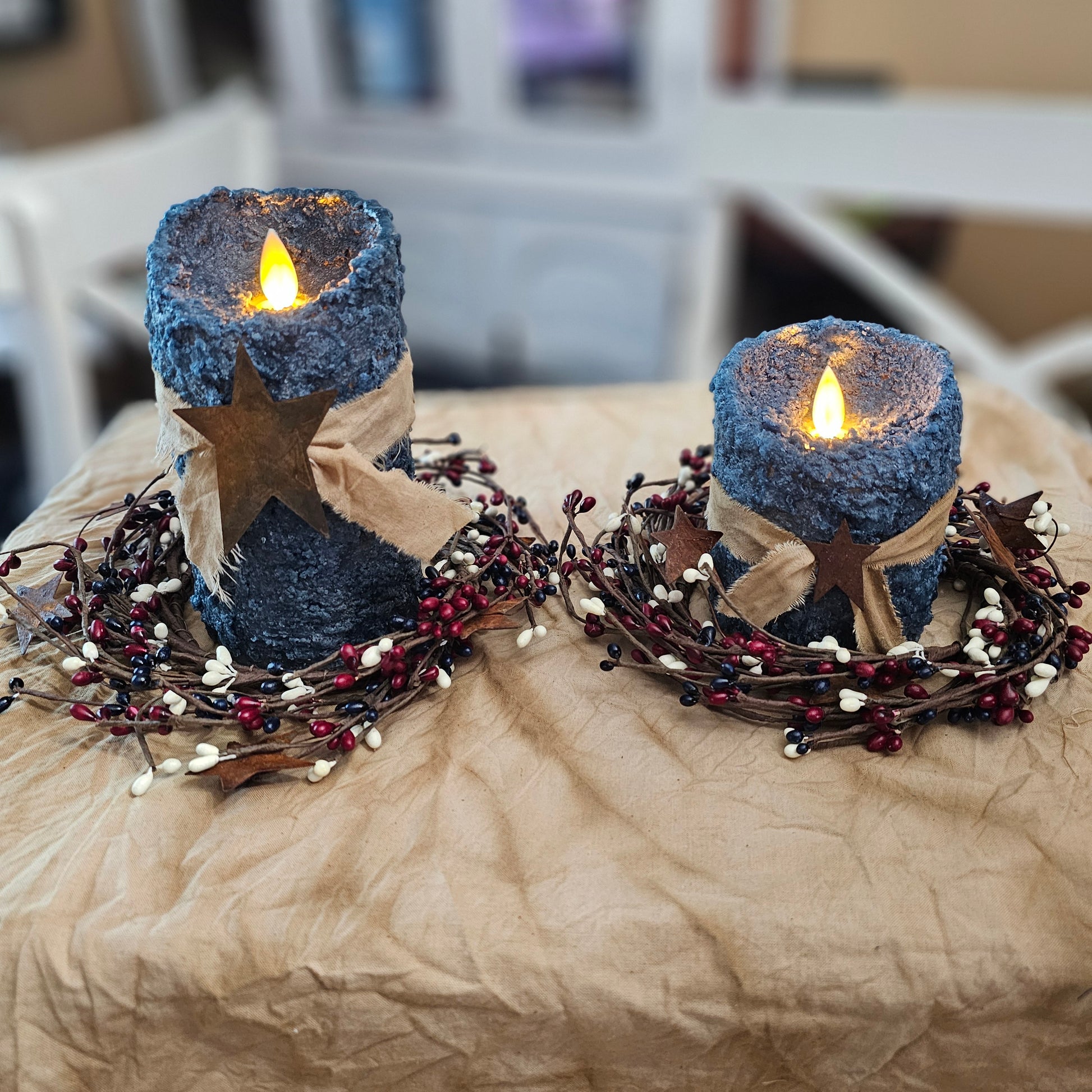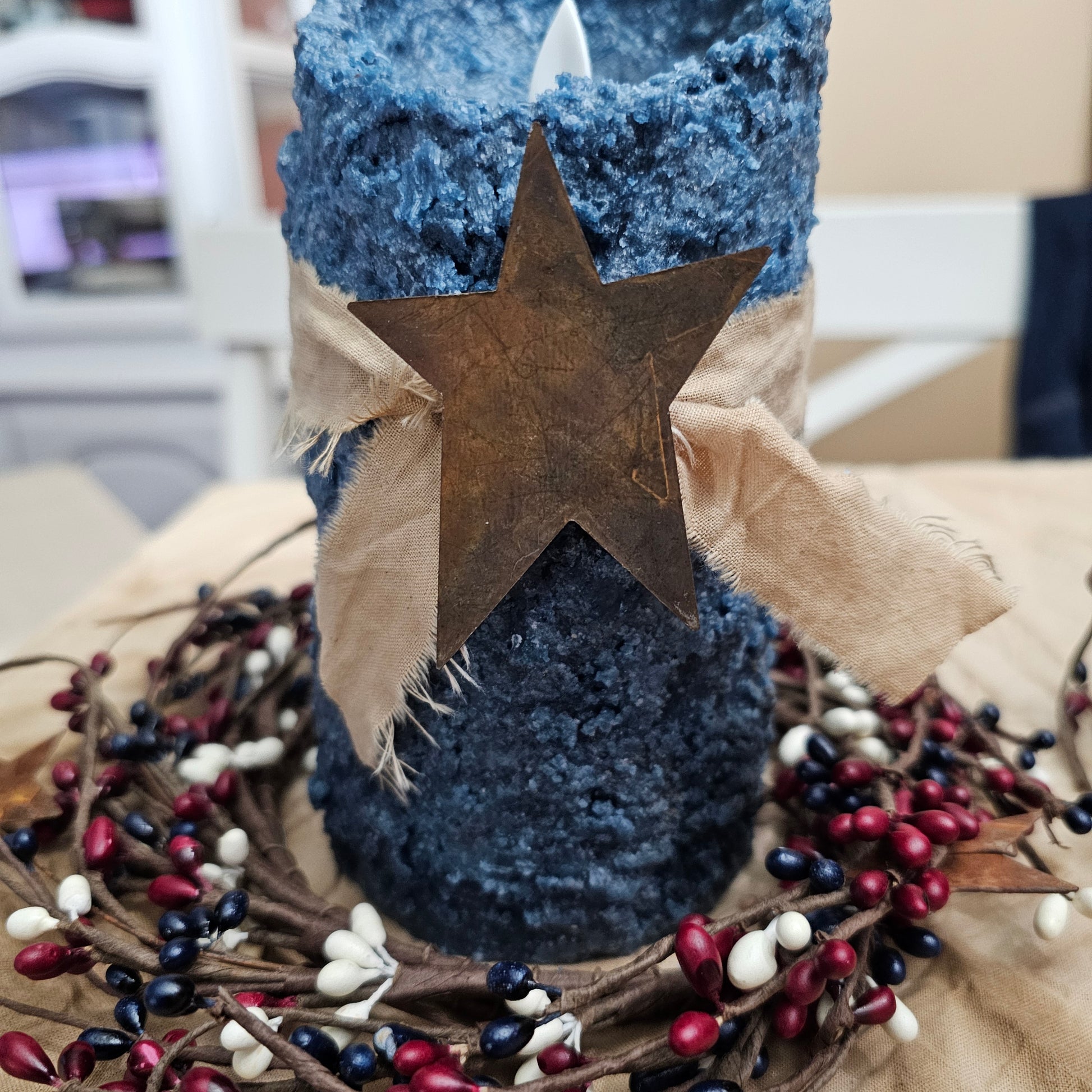Primitive Handmade timered moving flame LED candle. Grubby candles, Primitive candles, farmhouse candles, timer candles, battery operated candles.