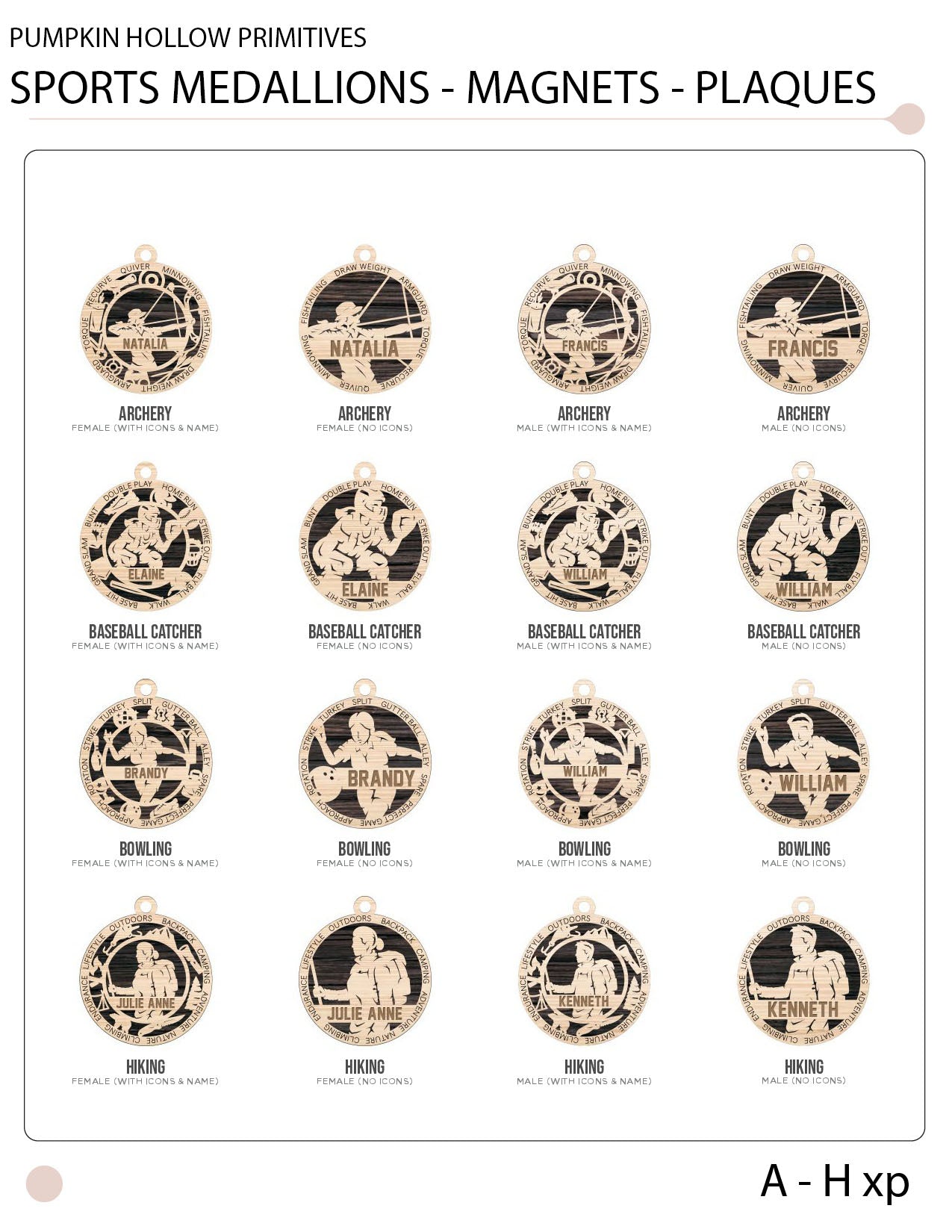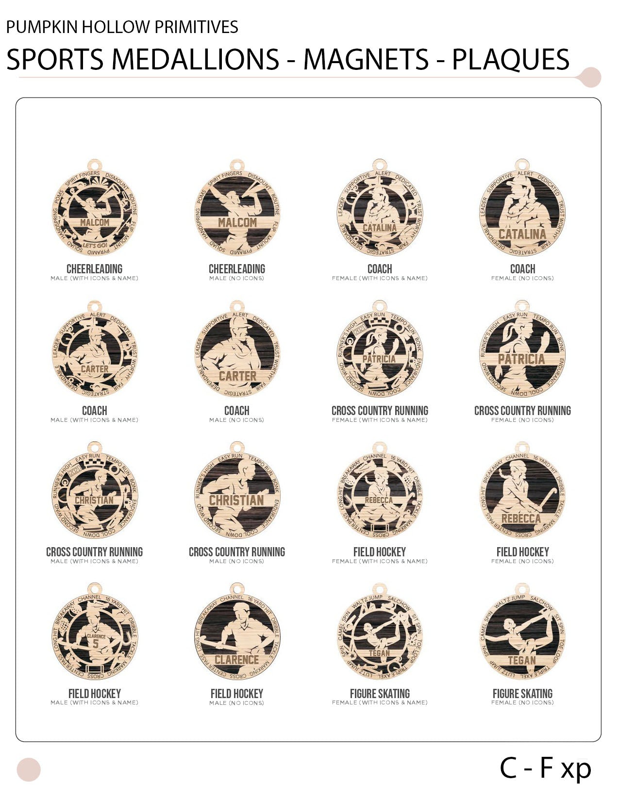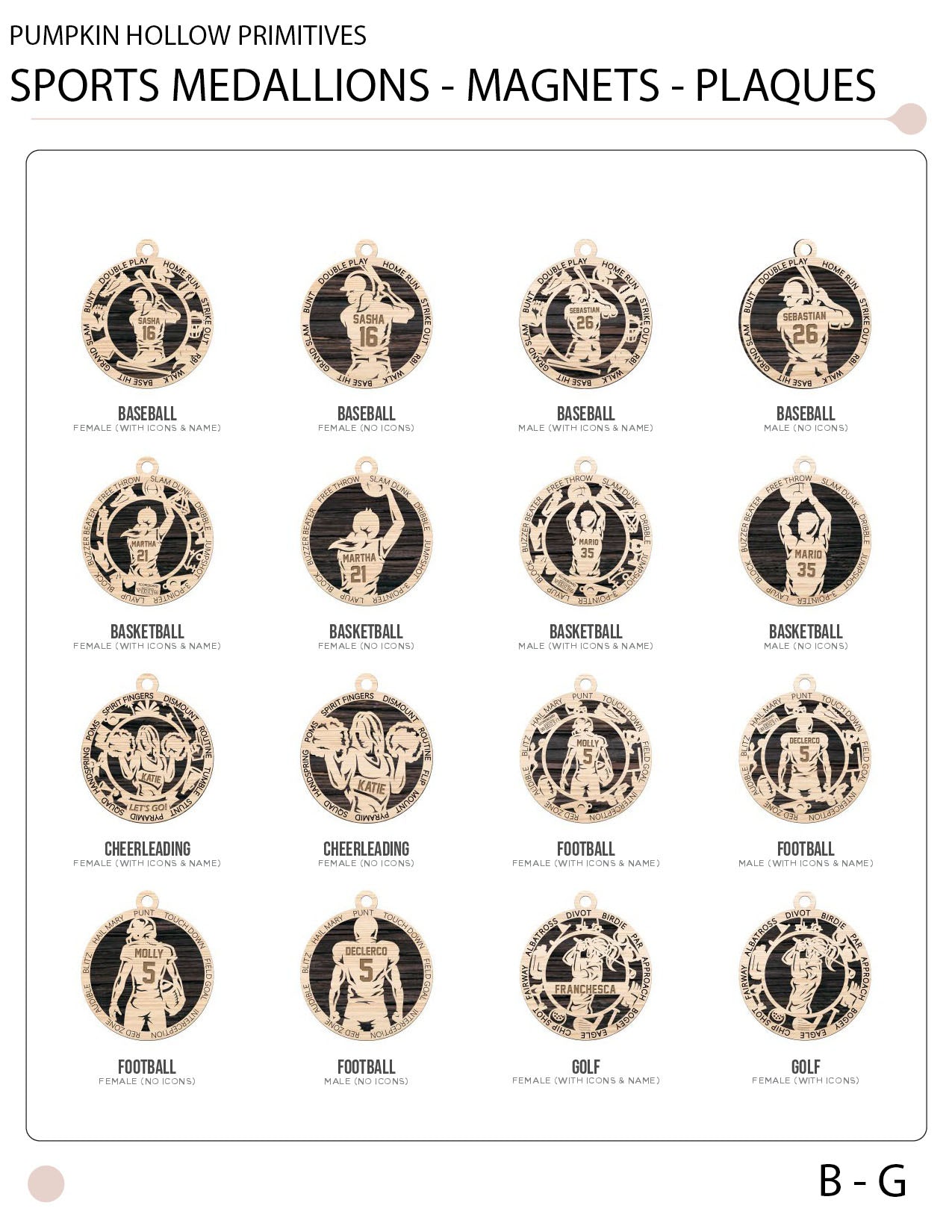 Note: The actual item may slightly differ from the example photos by the cuts and background color and is mainly to provide you with the general vast array of sports we cover. Some cuts may be replaced with lasered markings instead. Please refer to the actual product photos for more product accuracy.