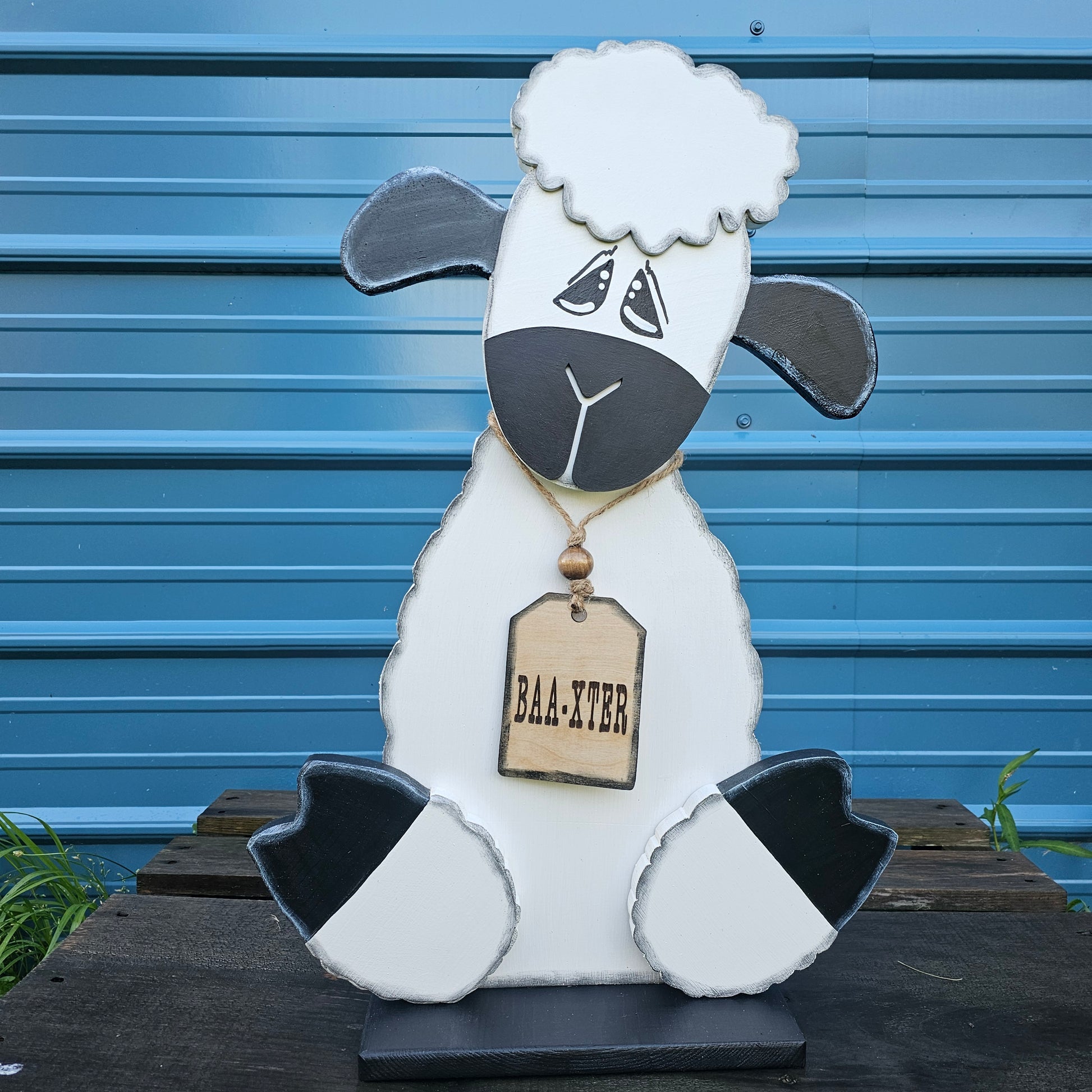 Welcome home this adorable addition to your farm family! These cute and quirky wooden sheep are perfect for decorating your front porch with a touch of farmhouse charm.